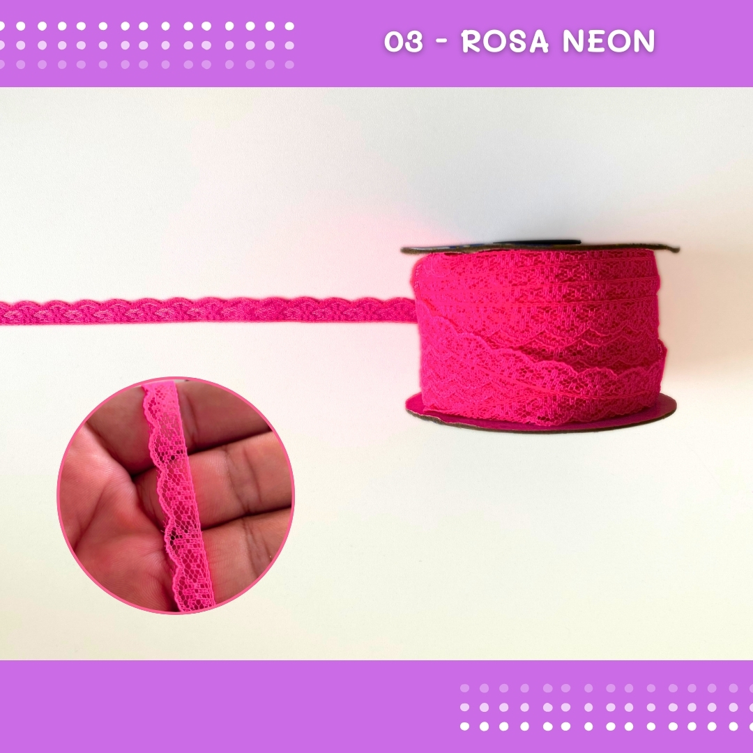 Renda De Poliamida R001 - 09mm - Rolo C/ 50 Mts Cor:Rosa-Neon-03