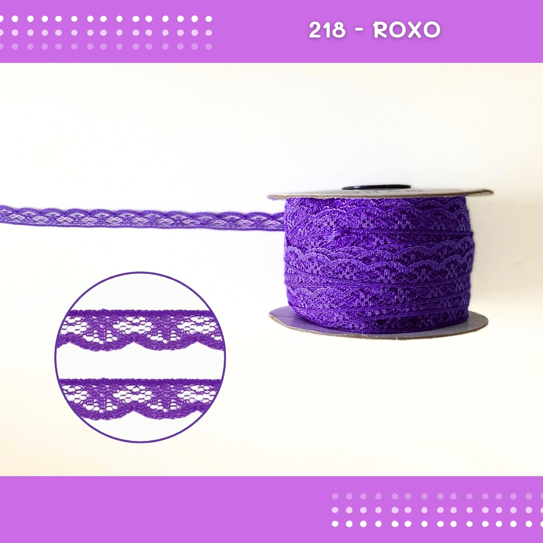 Renda De Poliamida R001 - 09mm - Rolo C/ 50 Mts Cor:Roxo-218