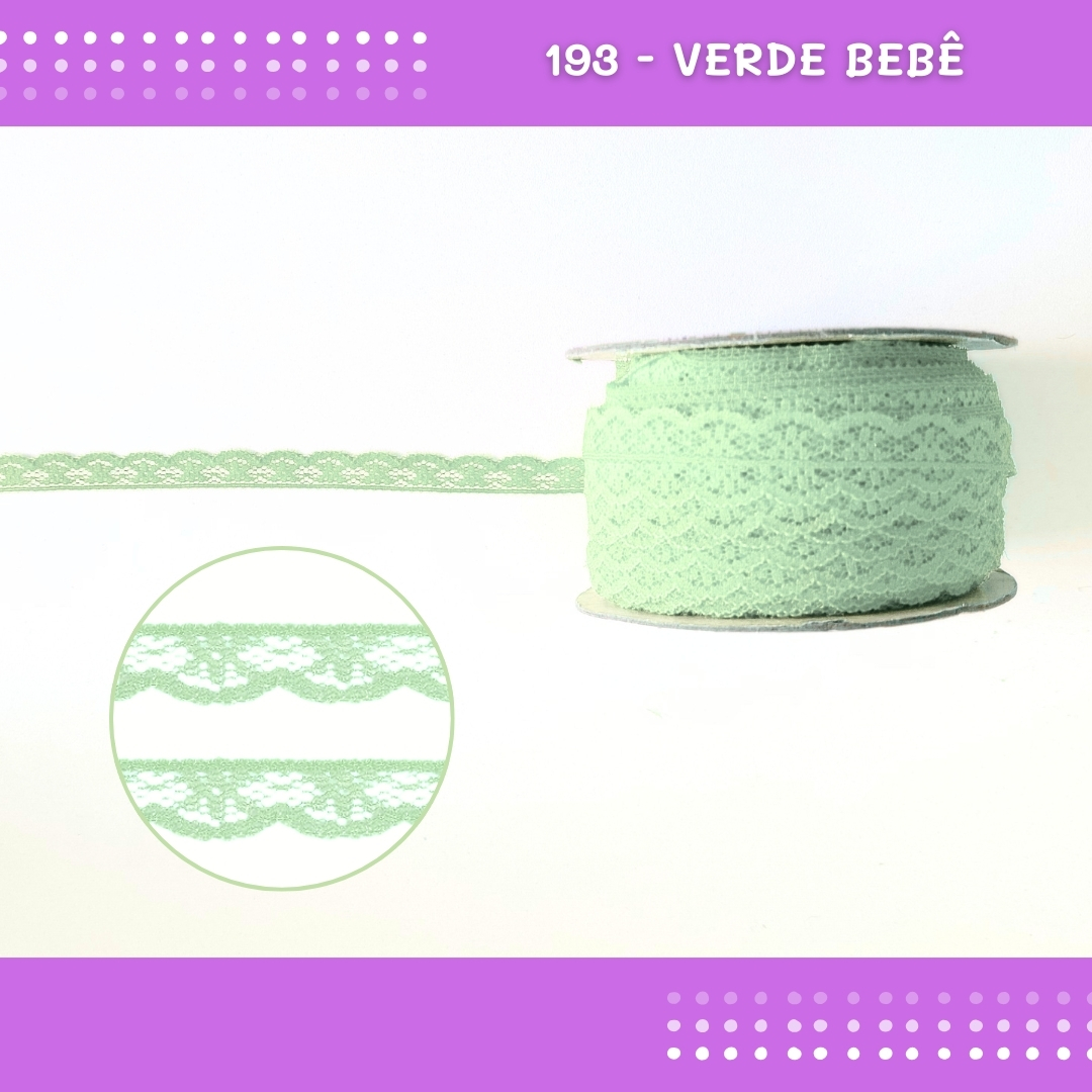 Renda De Poliamida R001 - 09mm - Rolo C/ 50 Mts Cor:Verde-Bebe-193