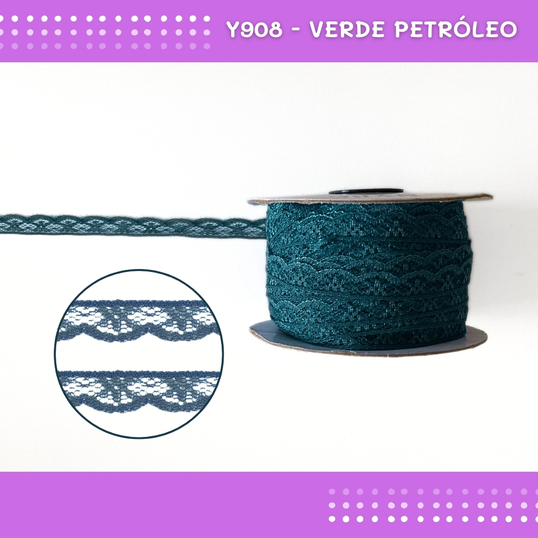 Renda De Poliamida R001 - 09mm - Rolo C/ 50 Mts Cor:Verde-Petroleo-Y908