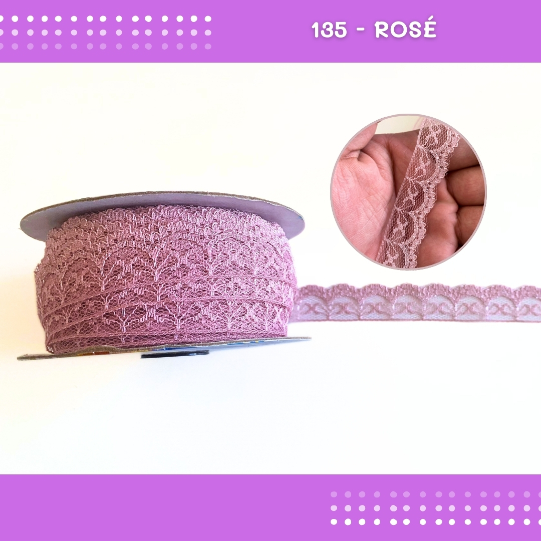 Renda De Poliamida R002 - 20mm - Rolo C/ 50 Mts Cor:Rose-135