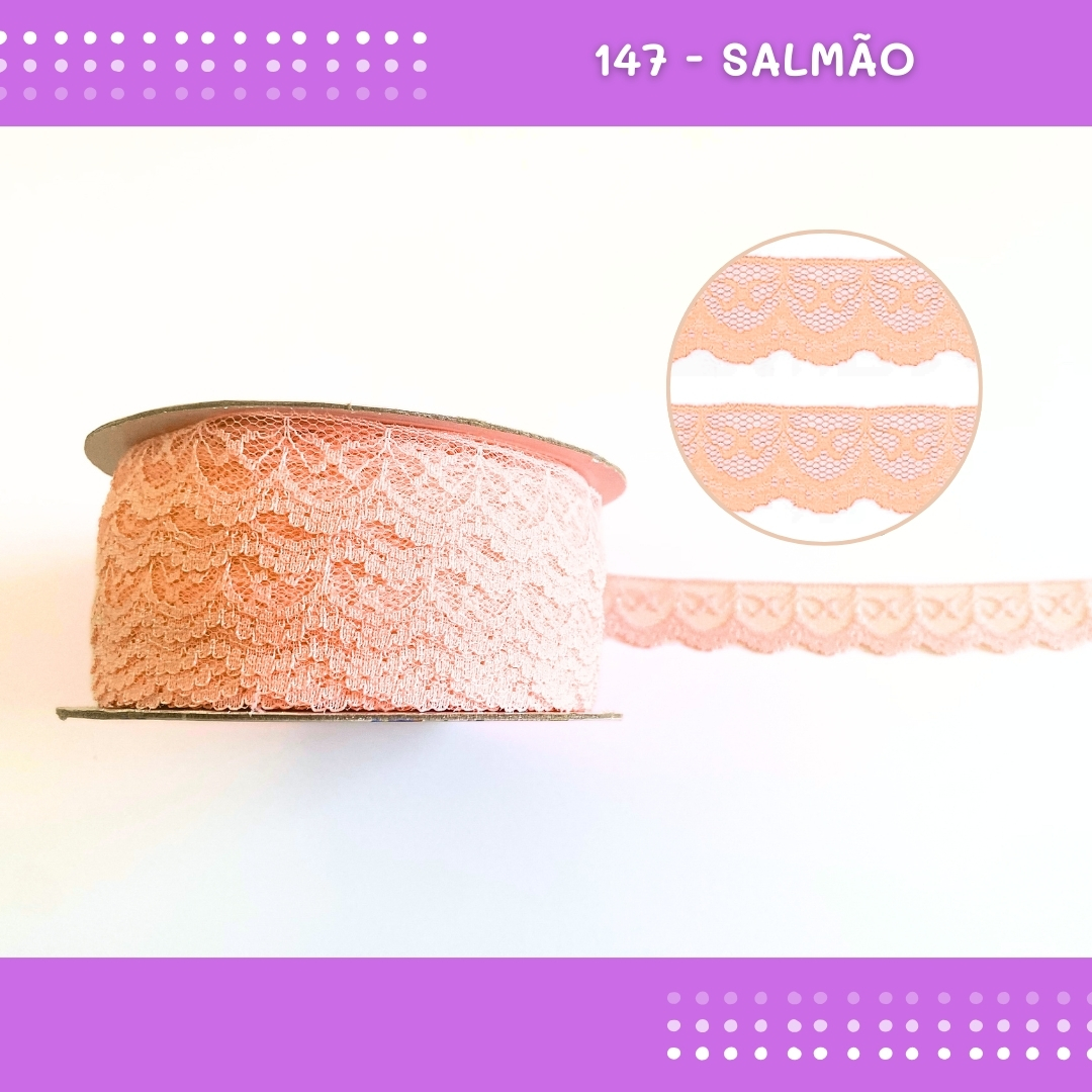 Renda De Poliamida R002 - 20mm - Rolo C/ 50 Mts Cor:Salmao-147