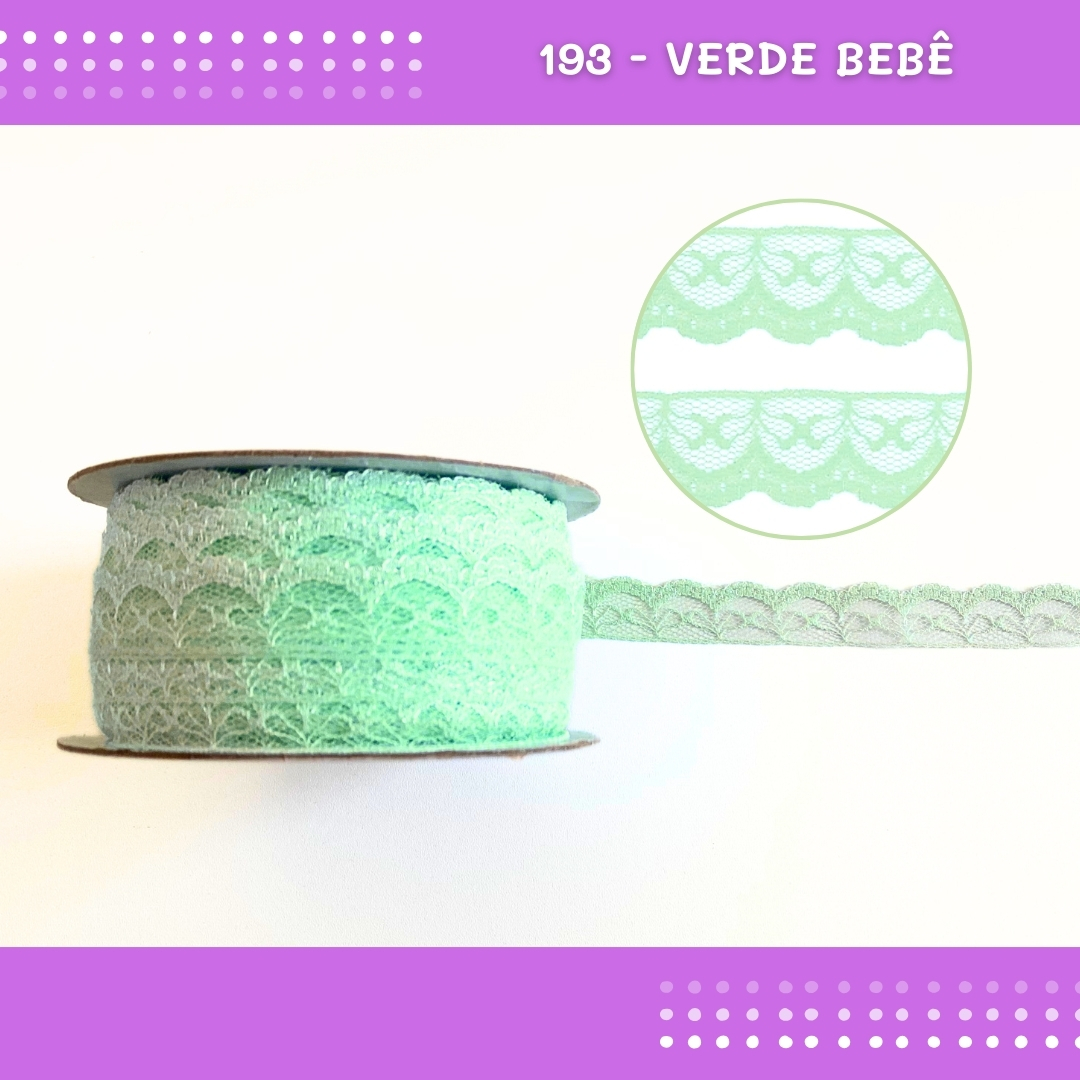 Renda De Poliamida R002 - 20mm - Rolo C/ 50 Mts Cor:Verde-Bebe-193