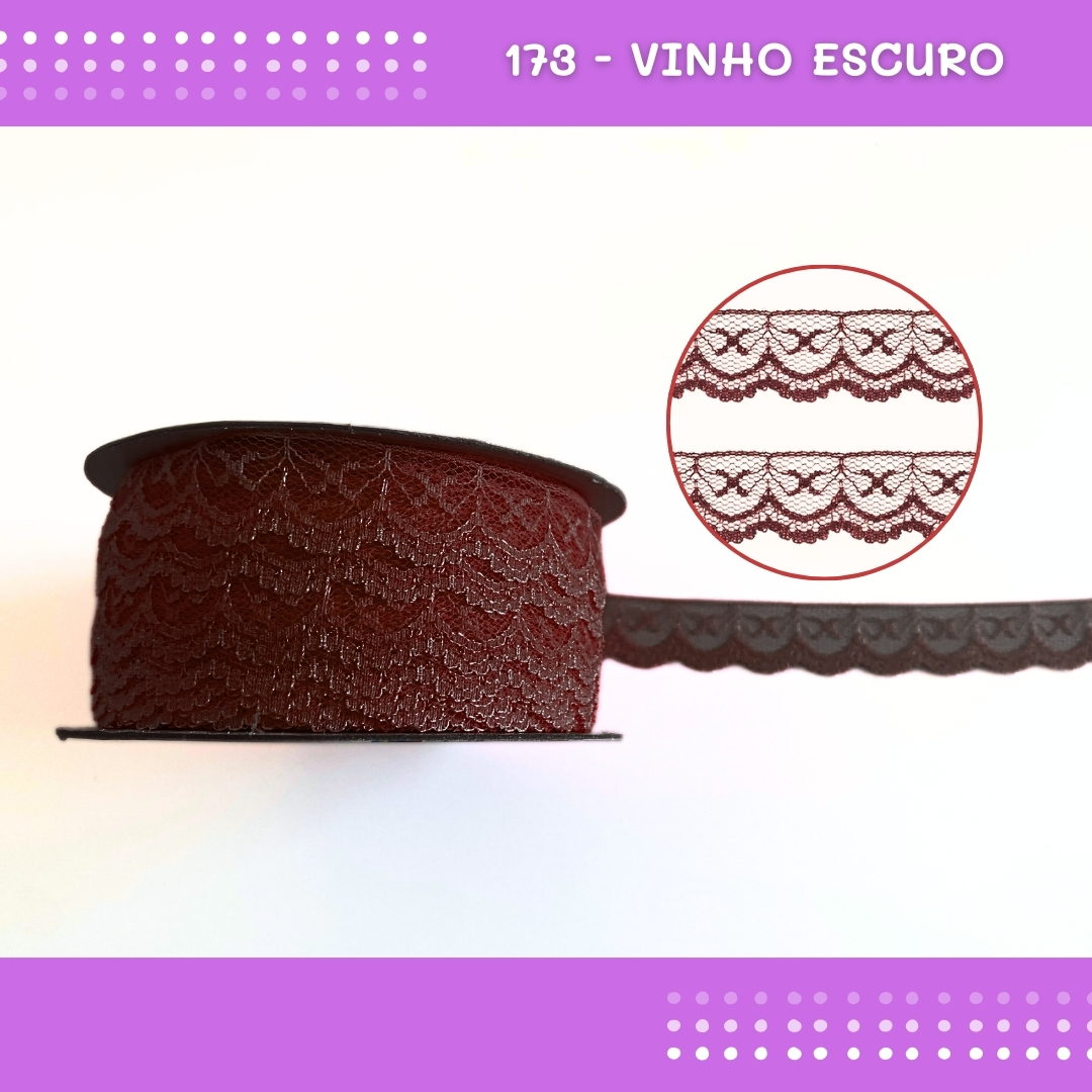 Renda De Poliamida R002 - 20mm - Rolo C/ 50 Mts Cor:Vinho-Escuro-173