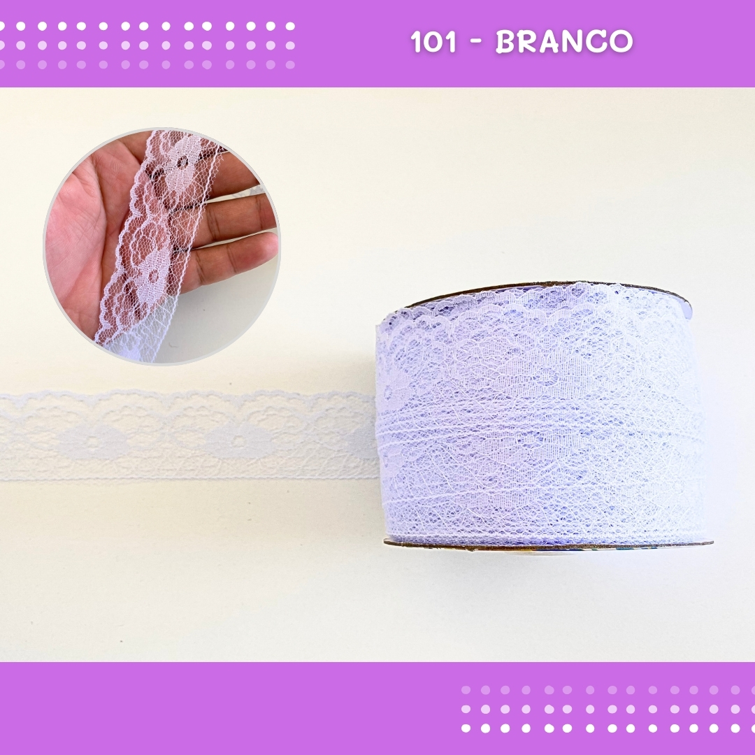 Renda De Poliamida R003 - 40mm - Rolo C/ 50 Mts Cor:Branco-101