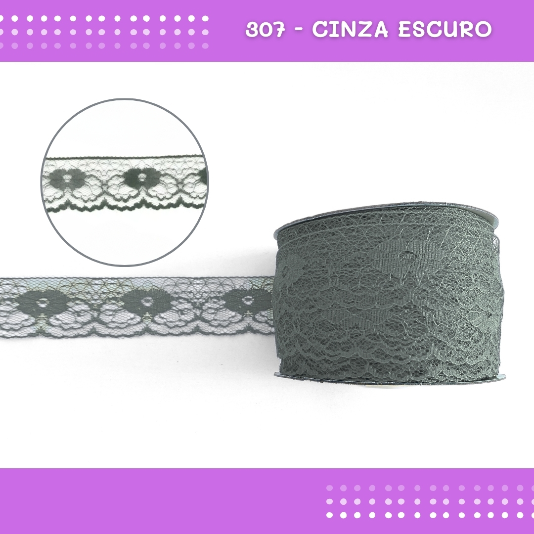 Renda De Poliamida R003 - 40mm - Rolo C/ 50 Mts Cor:Cinza-Escuro-307