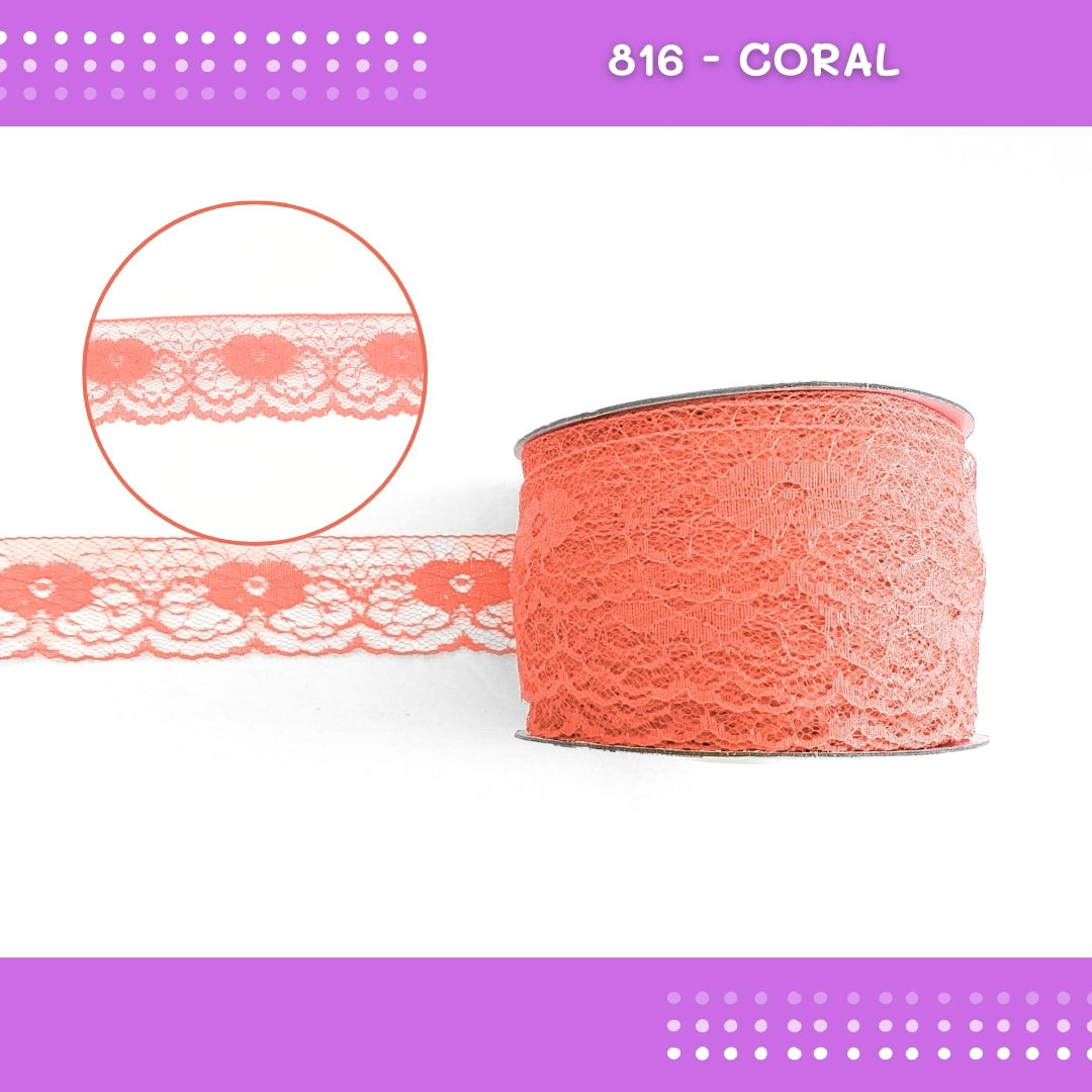Renda De Poliamida R003 - 40mm - Rolo C/ 50 Mts Cor:Coral-816