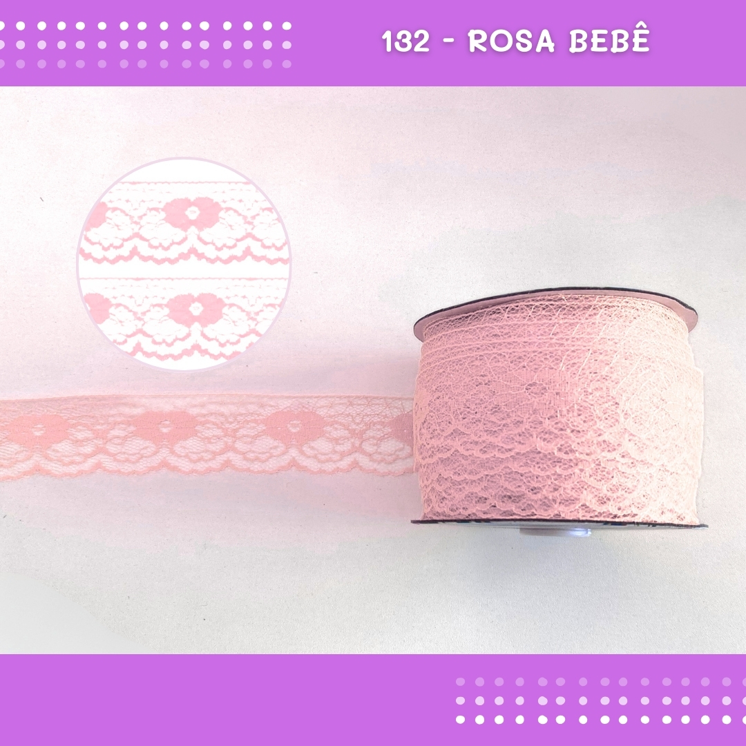 Renda De Poliamida R003 - 40mm - Rolo C/ 50 Mts Cor:Rosa-Bebe-132