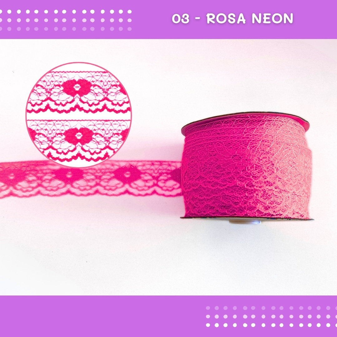 Renda De Poliamida R003 - 40mm - Rolo C/ 50 Mts Cor:Rosa-Neon-03
