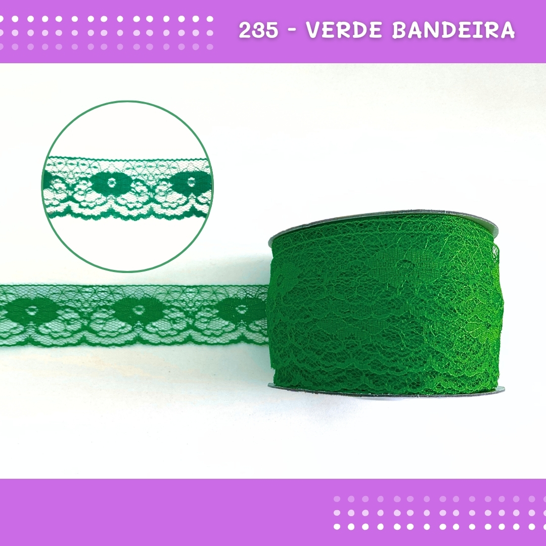 Renda De Poliamida R003 - 40mm - Rolo C/ 50 Mts Cor:Verde-Bandeira-235