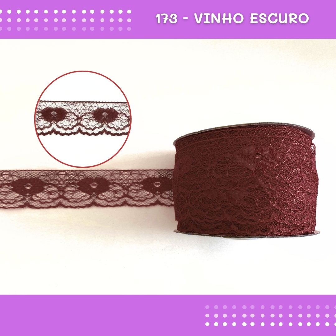 Renda De Poliamida R003 - 40mm - Rolo C/ 50 Mts Cor:Vinho-173