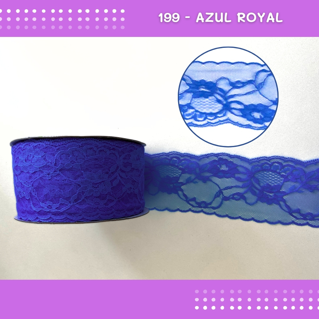 Renda De Poliamida R004 - 75mm - Rolo C/ 50 Mts Cor:Azul-Royal-207