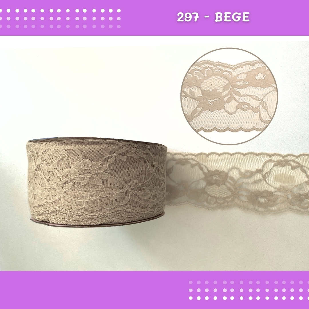 Renda De Poliamida R004 - 75mm - Rolo C/ 50 Mts Cor:Bege-297