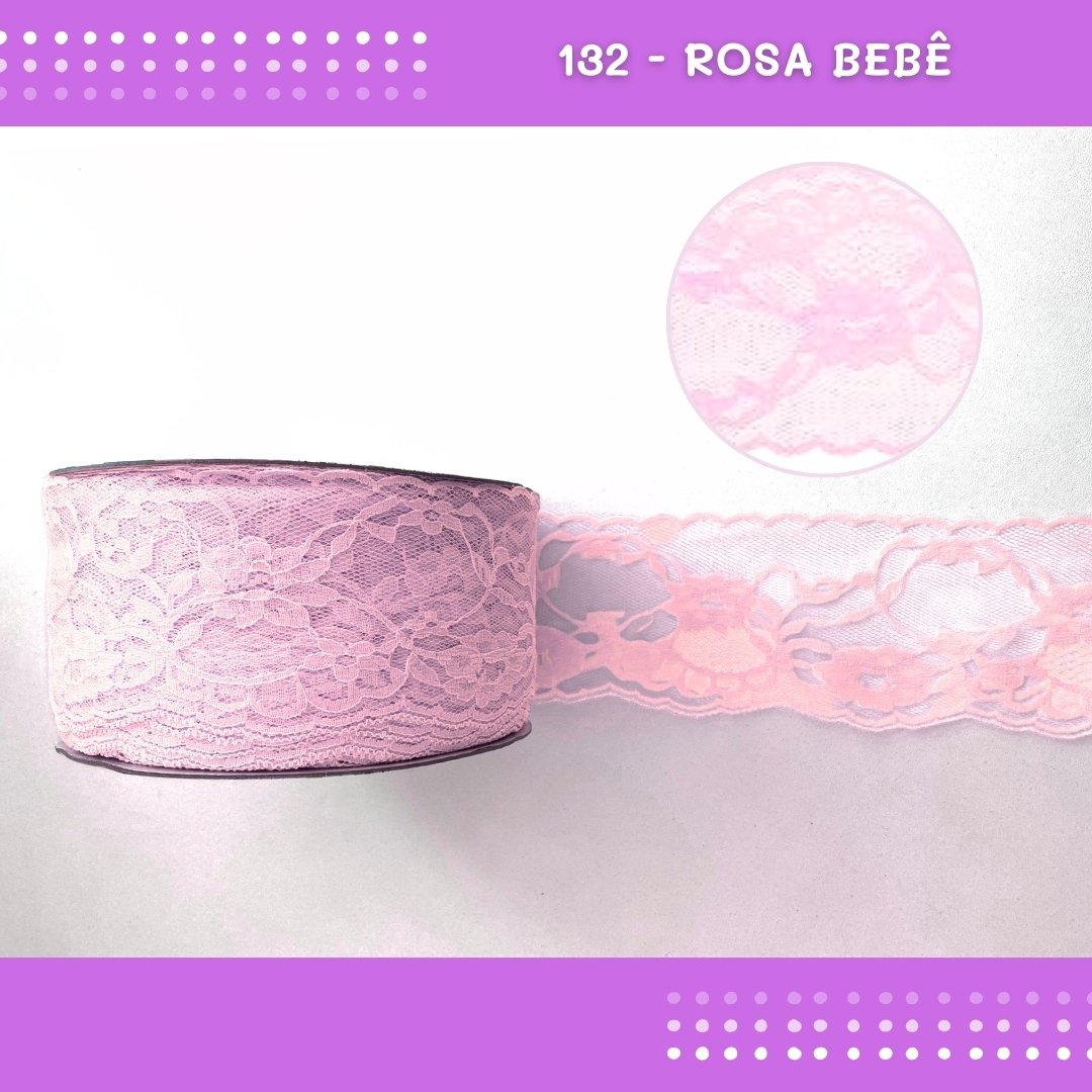 Renda De Poliamida R004 - 75mm - Rolo C/ 50 Mts Cor:Rosa-Bebe-132