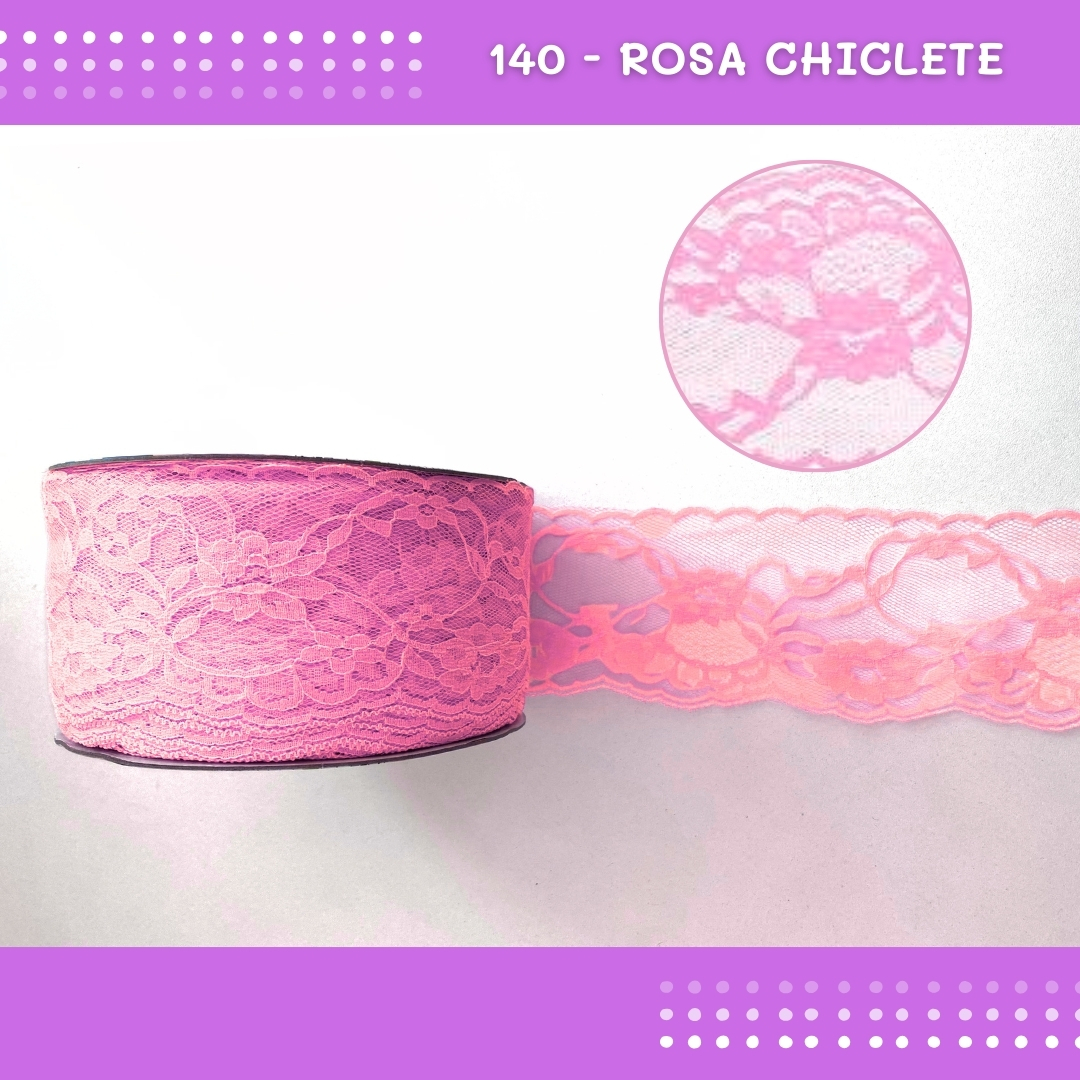 Renda De Poliamida R004 - 75mm - Rolo C/ 50 Mts Cor:Rosa-Chiclete-140