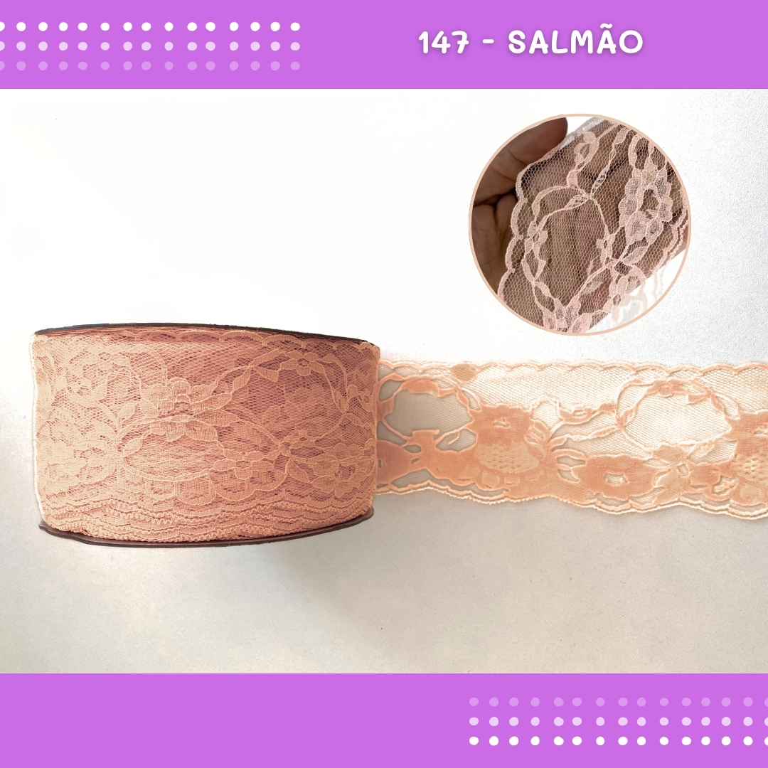 Renda De Poliamida R004 - 75mm - Rolo C/ 50 Mts Cor:Salmao-147