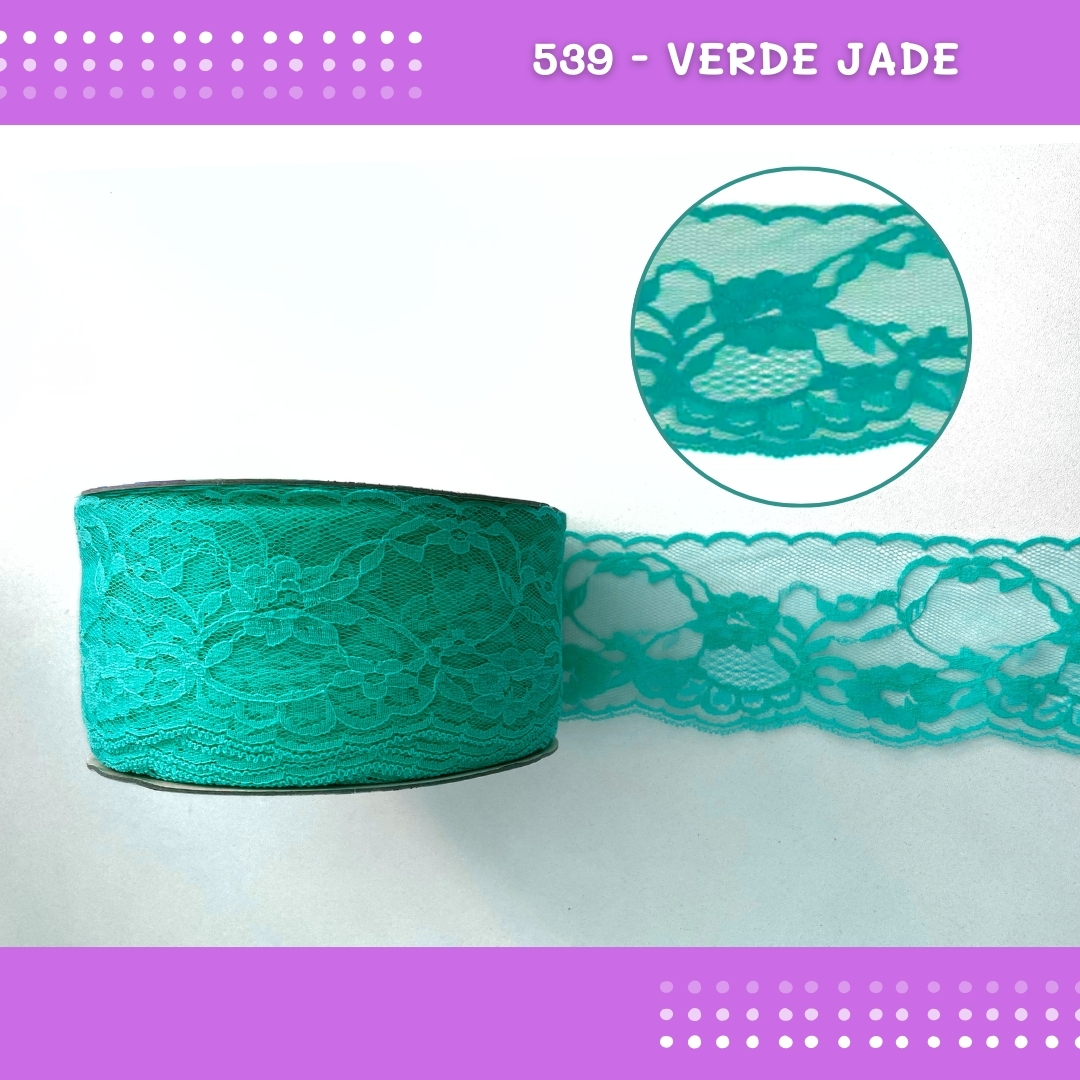 Renda De Poliamida R004 - 75mm - Rolo C/ 50 Mts Cor:Verde-Jade-539