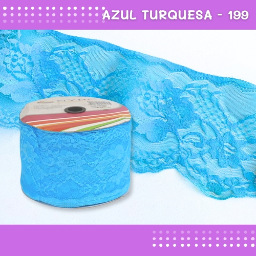 Renda De Poliamida R005 - 90mm - Rolo C/ 50 Mts - Cor:Azul-Turquesa-199