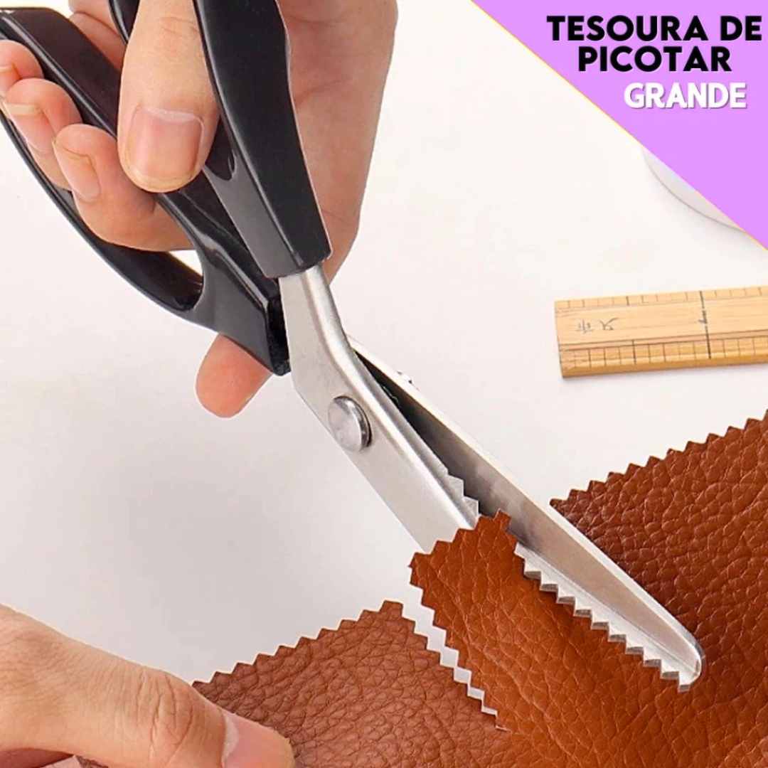 Tesoura Profissional de Picotar Ideal Para Cortes em Tecidos, Papeis, Cartolina, EVA, Scrapbook, Couro, Artesanato, dentre outros. Essas Tesouras São Fabricadas Com um Alto Nível de Qualidade Justamente Para Fazer Seus Trabalhos Com o Máximo De Conforto e Praticidade. Fabricada Com Lâminas De Aço Inoxidável, Resiste a Corrosão, Ferrugem e Cola. Cuidados: Guardar a tesoura limpa, Seca e em Local Seguro, Fora do Alcance de Crianças.